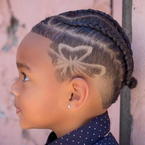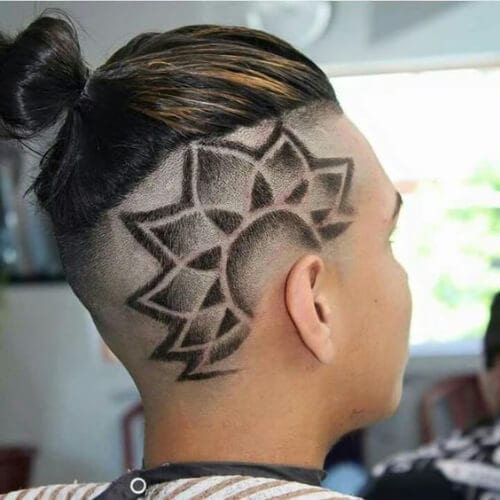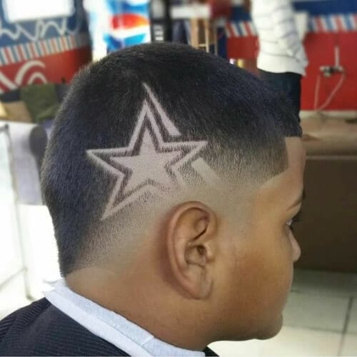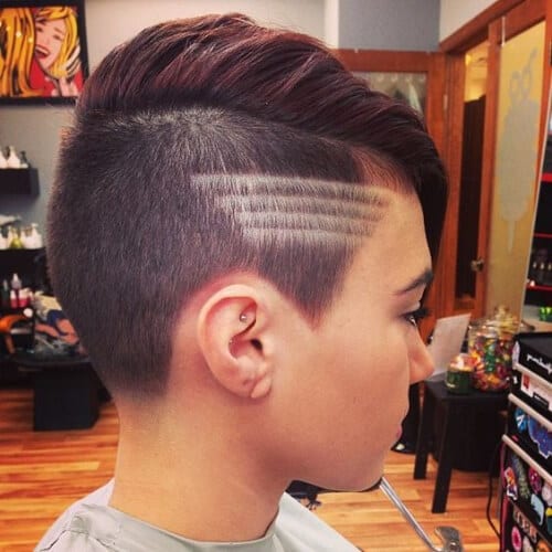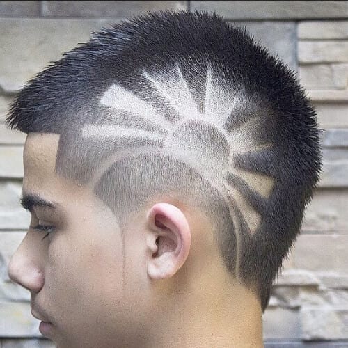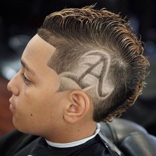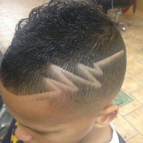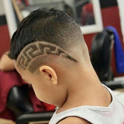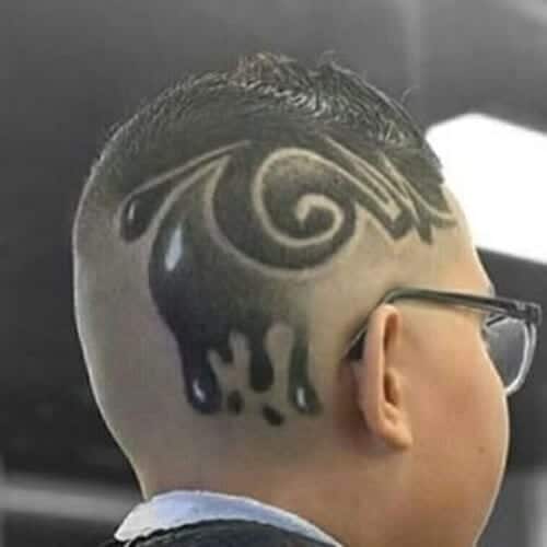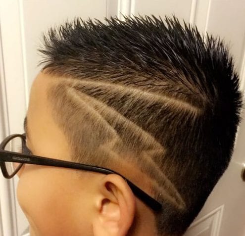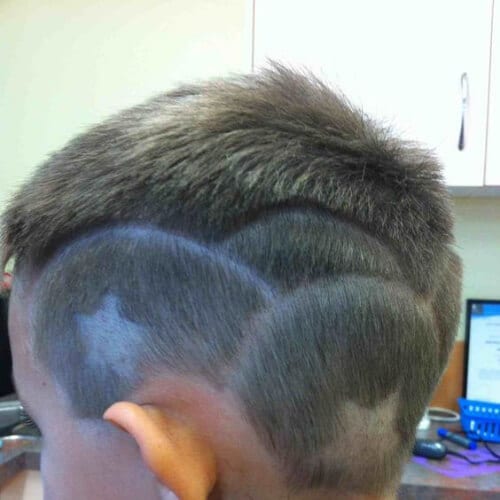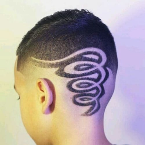 Dette er en af de mere dæmpede og abstrakte hårdesign, som din dreng kan bære i skolen. Du skal dog først tjekke for at se, om han er tilladt, ellers kan han komme hjem med en note.
