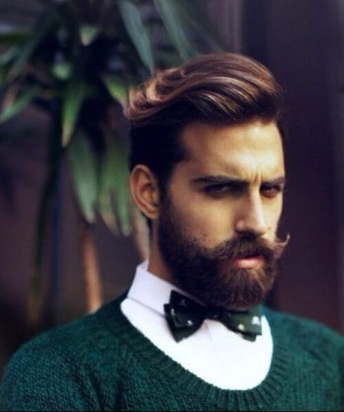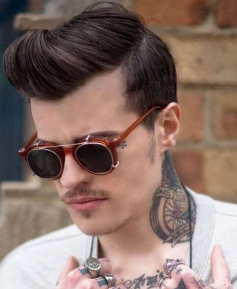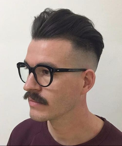Dette er den rodede og mere naturlige version af den lange glatte tilbage med en under barbering, som du lige har set ovenfor. Og hvad med den 70'ers bart? Hvor cool er det? Par det hele sammen med nogle tunge indrammede briller, og du har et million dollars look.