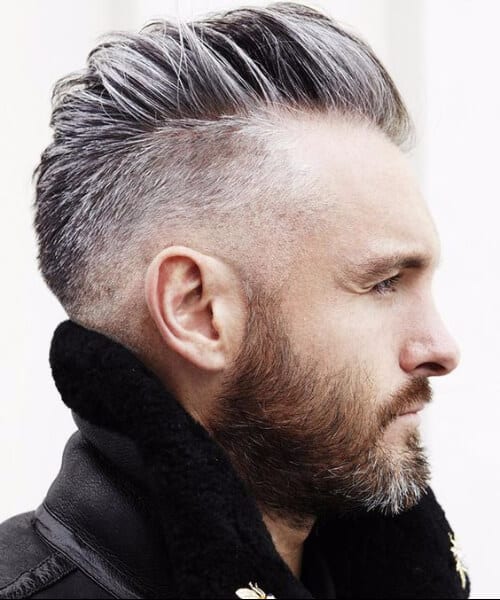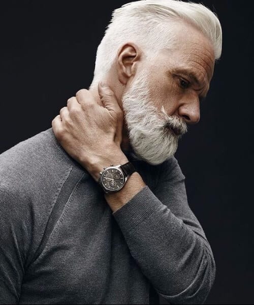 Vi kan hoppe et eller to årtier videre og vise dig, hvordan en enkertop ser ud i fuld hvid. Det ser fantastisk ud. Især når det er parret med et skæg i nøjagtig den samme nuance. Åbenbart, hvis du ikke kan vente så længe, kan du altid farve din platin.