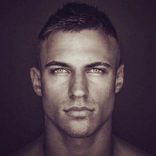 Dies ist ein niedriger Fade Caesar Buzz Cut. Probieren Sie es aus, wenn Sie eines Morgens aufwachen und sich wie echte Könige fühlen möchten - schließlich wurde der Name der Haarschnitte vom gleichnamigen römischen Kaiser inspiriert. Verwenden Sie einen kleinen und dichten Kamm, um die perfekte Frisur zu kreieren.