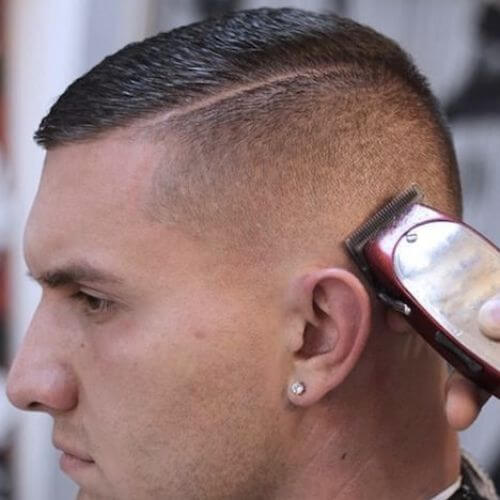 In dieser Version von The Classic Buzz Cut wird das Styling auf neue Höhen gebracht und hilft, diesen Look aus dem Gewöhnlichen herauszuholen. Schauen Sie einfach, wie perfekt diese Linien sind! Der Schnitt wird auch mit einem adrollen Anzug und Krawatte erstaunlich gut passieren.