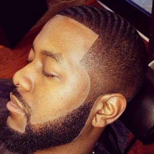 20. Frisur der Rasiermesserlinien mit verbundenen Seiten und Bart
