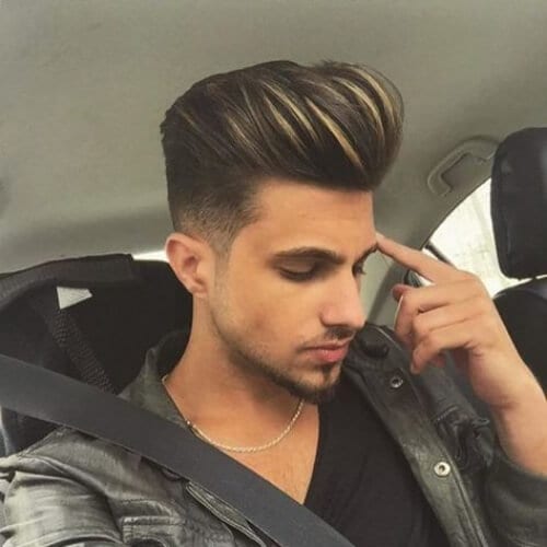 Wenn Sie die Bräune oder die Olivenuntertöne in Ihrer Haut hervorheben möchten, können Sie immer ein bisschen blonde Balayage oder ein paar Highlights für Peekaboo entscheiden. Um sie zu zeigen, legen Sie Ihre Haare mit einem Hauch von Pomade in eine hohe Tatsache. Dieser Haarschnitt wird definitiv gut zu Ihrer ovalen Gesichtsform passen.