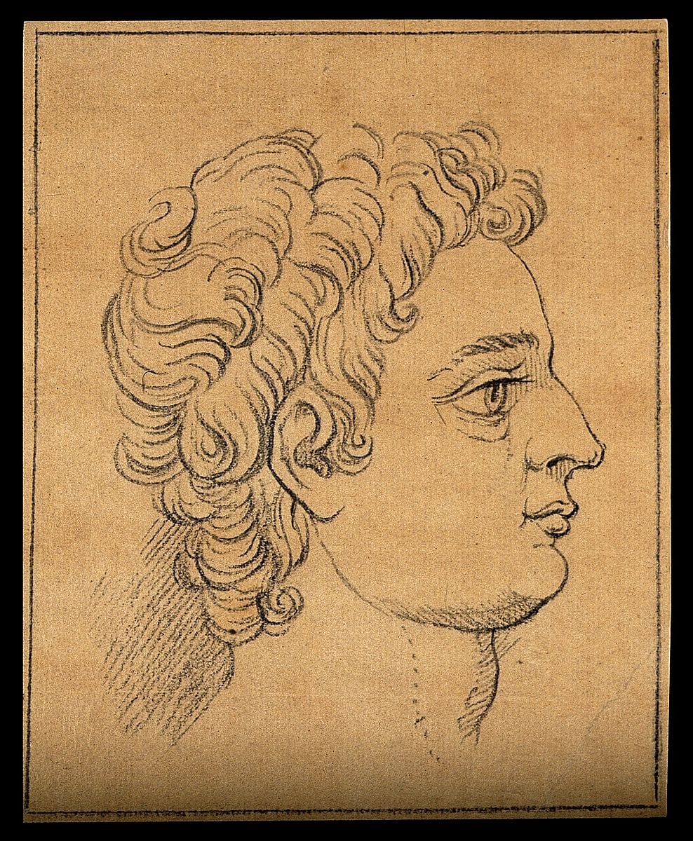 Tämä kuva edustaa tyypillistä muinaista Kreikan miesten kampausta. Kuva CC by 4.0, Wellcome Library, Lontoo Wikimedia Commonsin kautta
