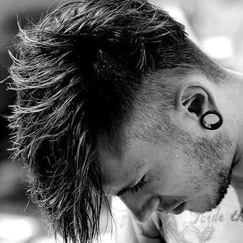 Pitkät kiharat ansaitsevat valokeilan. Miksi et siis korosta niitä silloin haalistuneilla puolilla? Tämä moderni kampaus on yksi miesten suosituimmista valinnoista, koska se myös urheilee pientä, mutta voimakasta hiussuunnittelua tai hiusten tatuointia.