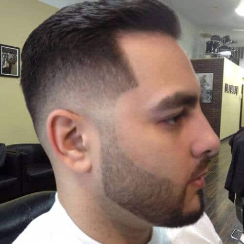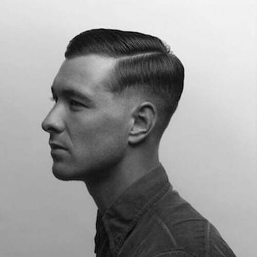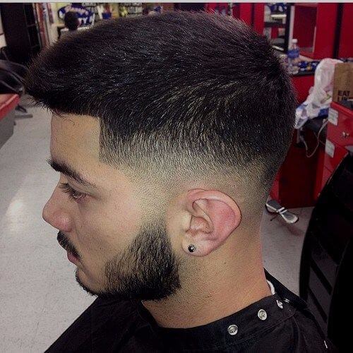 Tämä moderni kampausvalinta on varattu miehille, jotka haluavat korostaa heidän karujen puolensa. Se vetää inspiraatiota armeijasta, mutta siinä on silti tarpeeksi popkulttuuria, jotta sinusta näyttää viileältä. Nämä melkein korkeat haalistuvat, mutta silti puolivälissä.