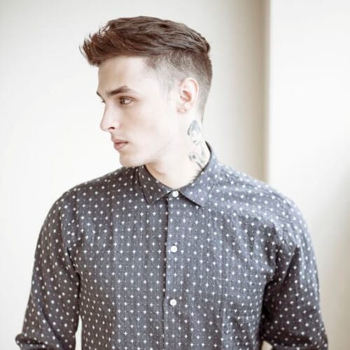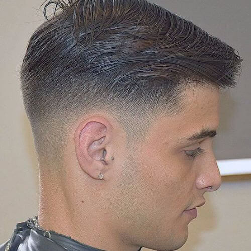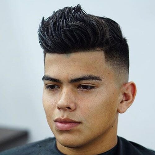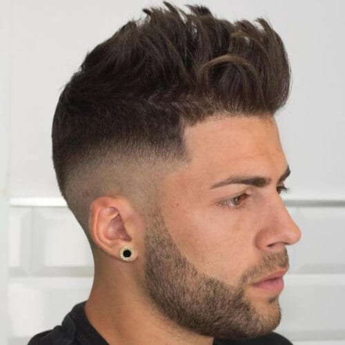 Kerrostettu pitkä yläosa, jossa on tylsä leikkaus ja keskitason haalistuva hiusleikkaus, voivat osoittautua oikeaksi valinnaksi mille tahansa kasvomuodolle. Katkeat päät antavat sinulle debonairin näyttämään täydelliseltä rentoasuihin.