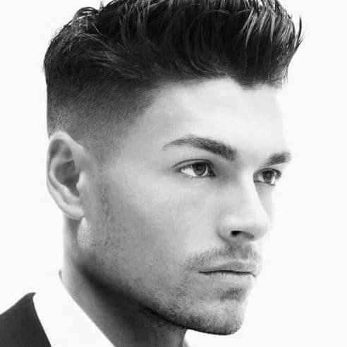 Tämä söpö kaveri-tavallinen ilme ansaitsee mahdollisuuden. Se on erittäin helppo muotoiltava hiusten ja keskitason haalistuminen on mukava kosketus. Lisäksi edessä oleva quiff näyttää herkän kakun jäätämisestä.