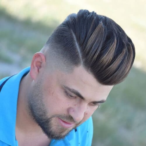Mikään ei ole verrattavissa virheetöntä pompadouria, jota korostaa puolivälissä haalistuva hius. Tässä hieman retro -pompadourissa on moderneja aksentteja, joiden avulla tilat voit valita enemmän kaupunkien asuja.
