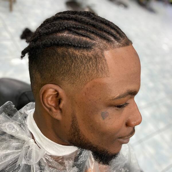Même si vous décidez de corner vos cheveux, vous aurez besoin d'un fondu pour garder ces bords serrés. Dans cet exemple, il a 6 à 8 petits cornrows sur le dessus de sa tête et le reste est rasé avec un fonte de cône élevé.