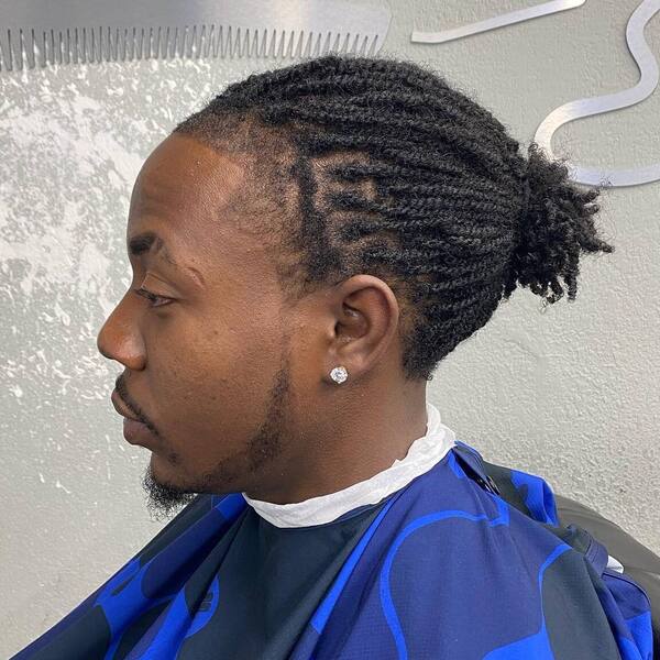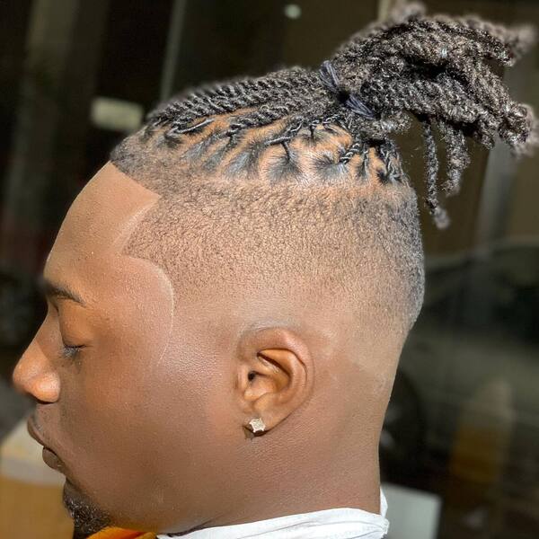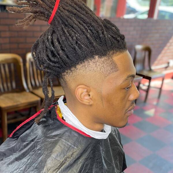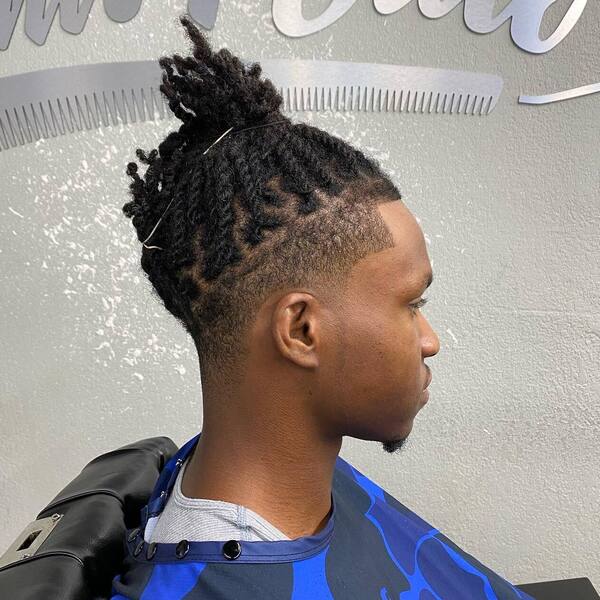 29. Homme Bun Afro Dreads avec des côtés effilés