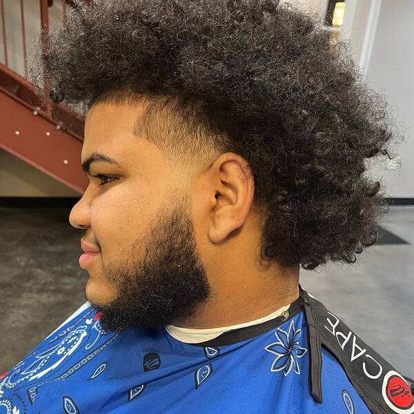 Les cheveux bouclés peuvent être difficiles à trouver le bon style. C'est pourquoi les hommes avec des boucles aiment porter leur manteau dans un afro pervers comme sur la photo ci-dessus. Demandez un cône élevé et développez votre barbe si vous souhaitez obtenir les meilleurs résultats de ce style.