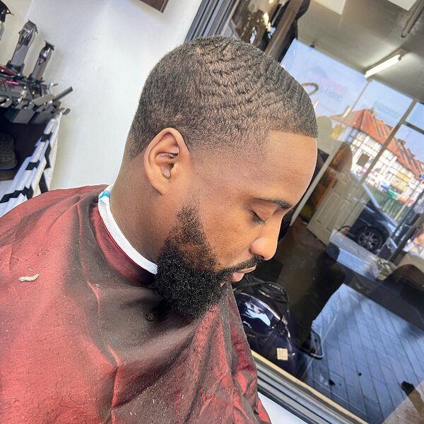 Voici une autre coiffure courte pour les hommes appelés 360 vagues afro avec un fondu conique. C'est un choix de cheveux très populaire pour les hommes du monde entier car il laisse les cheveux frais et bien rangés tout autour.