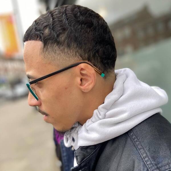 Les rétrécissements de peau se marient mieux avec des afros courts, et pour un peu de style supplémentaire, vous pouvez essayer de former des vagues dans vos cheveux comme il l'a fait sur la photo ci-dessus. Il s'agit d'une coiffure classique et simple qui aurait fière allure pour les hommes avec n'importe quel type de cheveux.