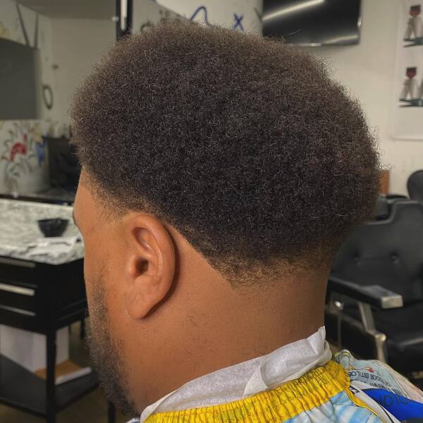 Dernier sur notre liste, mais il est certainement notamment ce beau coiffure appelée un afro de forme qui a un fondu à bascule bas ajouté. C'est un choix populaire pour les hommes aux cheveux plus épais parce que vous pouvez continuer à le faire pousser, et tout ce dont vous avez besoin est un rapide voyage chez le coiffeur pour se mettre en forme.