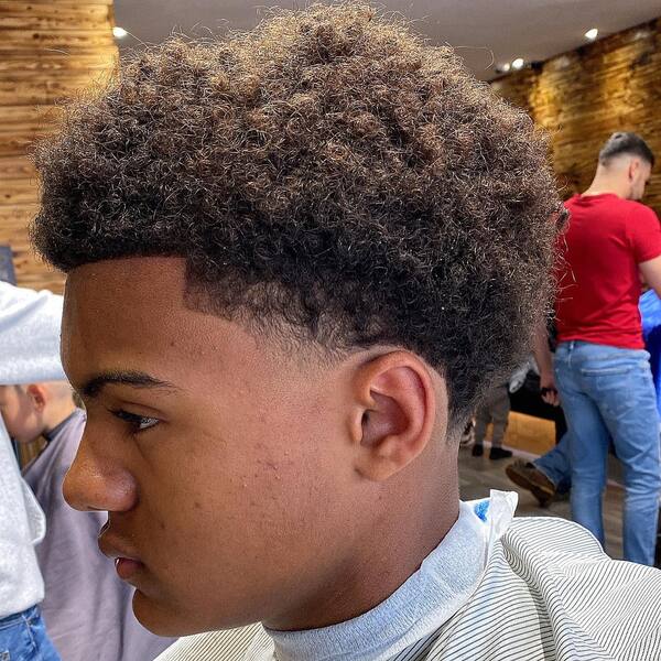 Cette coiffure suivante pour les hommes s'appelle l'afro court avec des boucles et un fondu à tobe moyen . Vous pouvez essayer ce style si vous aimez garder vos boucles serrées et naturelles.