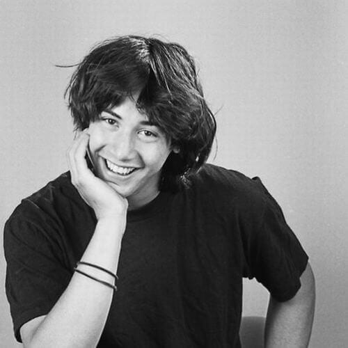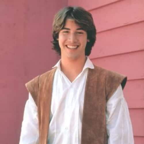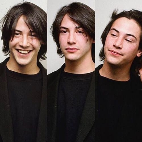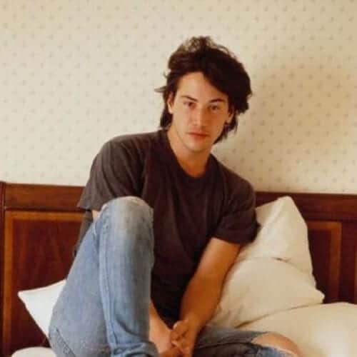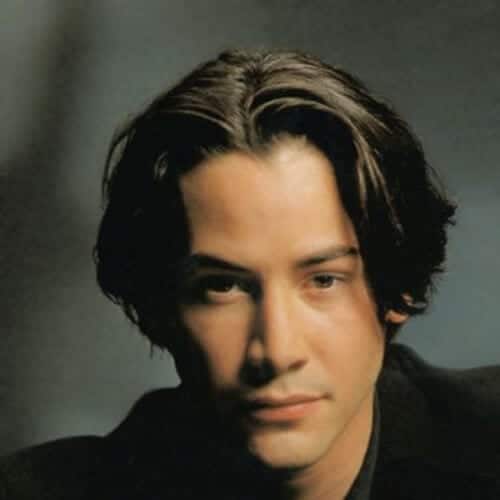 Voici un retour à une coupe de cheveux des années 80 si nous en avons déjà vu un. Keanu arbore une coupe de cheveux hirsute de la mâchoire avec une partie au milieu qui complimente ses caractéristiques adolescentes. La coupe de cheveux est également superposée pour un volume et un corps supplémentaires.