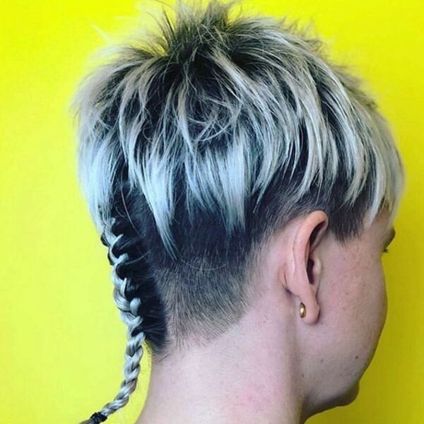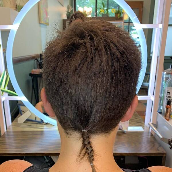 Les coupes de lutin avec une section tressée juste au-dessus de votre cou ont toujours l'air bien. Si vous ne savez pas comment tresser votre queue, prenez simplement trois sections de cheveux et torduez-les uniformément ensemble et attachez-les avec une petite cravate de cheveux en caoutchouc.