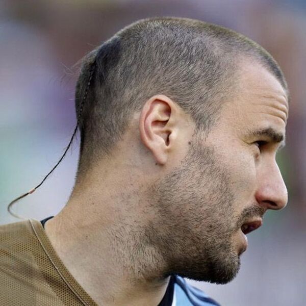 Les queues latérales ne sont pas aussi populaires que celles de la section médiane, et ici, il a ajouté une croix pour le faire ressortir encore plus. Essayez de pousser votre barbe pour tirer le meilleur parti de cette belle coiffure pour les hommes.