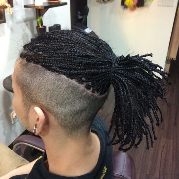 Les tresses longues ne sont pas seulement pour les femmes; Voici très masculin. Pour obtenir ce look, commencez par raser les côtés de vos cheveux courts, mais gardez la section centrale et tressez-la jusqu'au fond.