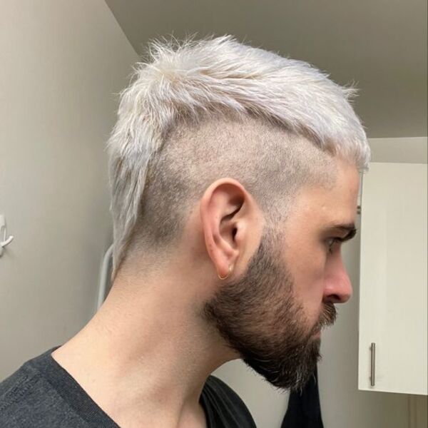 Pour les hommes aux cheveux moyens, cela devrait être votre prochain look. Il a choisi un mohawk de style moyen avec une queue et a ajouté une teinte presque argentée partout, et il a l'air si beau.