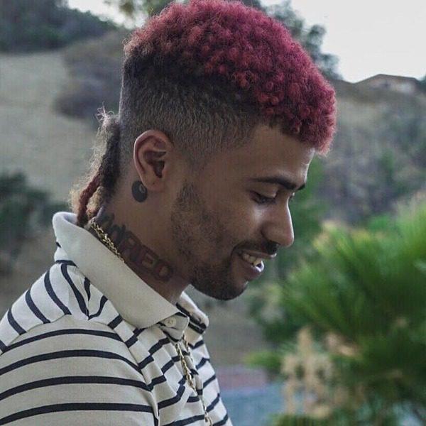 Ce beau gars porte un style chignon fané avec une queue tressée et colorée. Ce style simple serait facile à prendre en charge et vous empêcherait de recommencer au salon de coiffure chaque semaine.