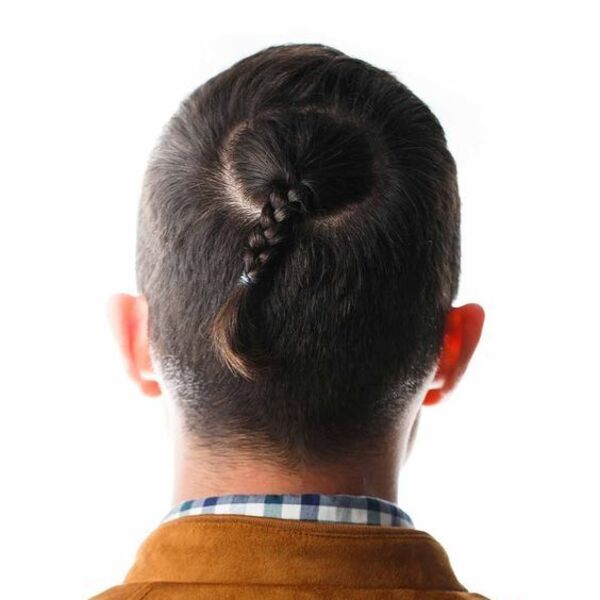 Voici un style classique et propre avec une section singulière de cheveux juste au-dessus de la nuque. Dans ce look, il a sa queue tressée, mais cela aurait l'air tout aussi cool s'il le laissait aussi lâche.