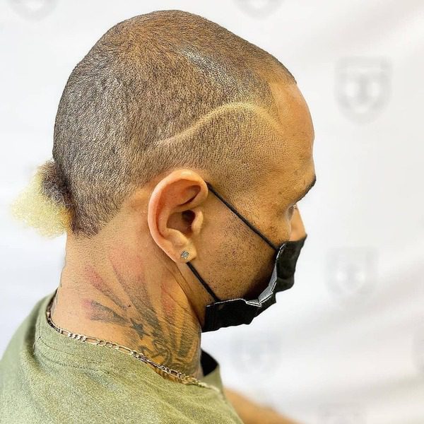 Les décondements de la peau sont un excellent choix pour les hommes de tous âges, et une fois que vous avez incorporé une petite section de cheveux à l'arrière pour former une queue touffue, vous allez adorer votre apparence. Ici, ils ont également ajouté une teinte blonde légère à la section touffue pour le faire ressortir contre le reste des cheveux.