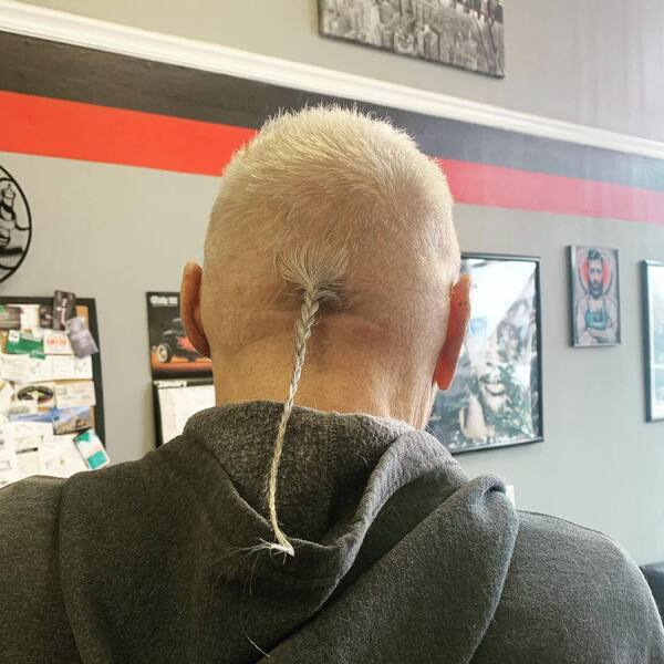 Les coiffures vintage reviennent toujours et redeviennent cool. Cette queue esthétique des années 80 est l'exemple parfait de cela. Voici un simple buzz coupé avec un long morceau de cheveux juste au centre.