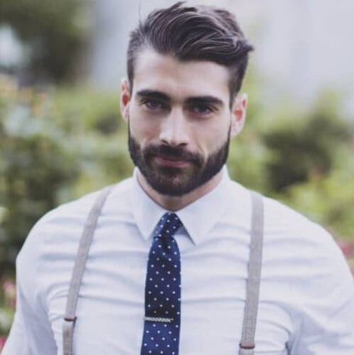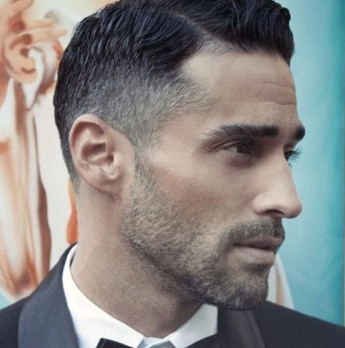 Voici la combinaison gagnante pour un événement spécial dans votre vie comme un mariage ou votre bal . Dans ce cas, la barbe est un chaume léger tandis que les cheveux ont été géliqués, lissés d'un côté avec une partie latérale et perfectionnés par une contre-dépouille.