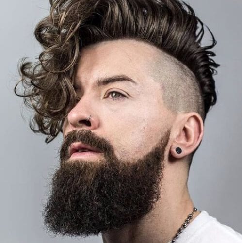 Étaient de retour à notre liste de contre-dépistage moderne avec les styles de barbe et un autre fausset -hawk est prêt à le ramener à la maison. Cette fois, c'est un bouclé avec une très longue frange qui est censée pendre vaguement et paresseusement sur votre visage jusqu'à ce qu'elle rencontre la ligne supérieure de votre barbe.