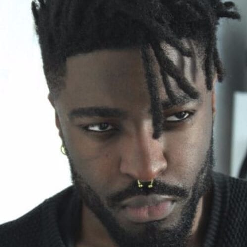Les dreads sont de superbes coiffures de protection que vous aimerez positivement une fois que vous les essayez. Il s'agit de la version courte avec des dreads minces et étroites ainsi qu'une contre-dépouille et une barbe courte très bien entretenue. L'anneau de nez doré est un ajout fabuleux à l'ensemble.