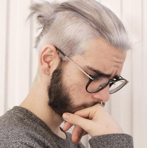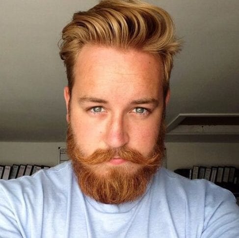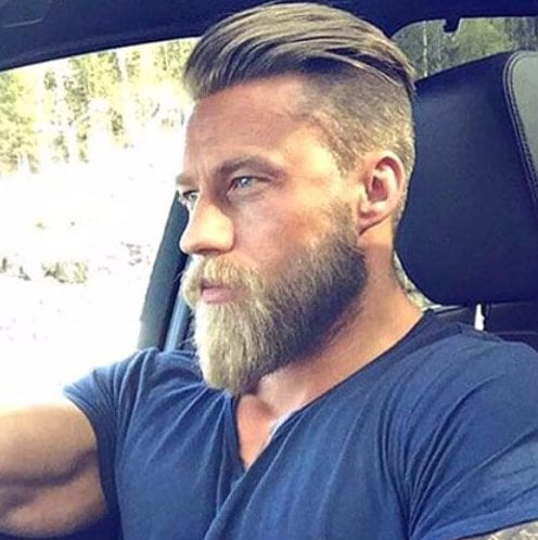 Si vous décidez de faire pousser une barbe, cela ne signifie pas que vous ne pouvez plus teindre vos cheveux. En fait, si vous choisissez la bonne teinte et coiffez le look correctement, il peut finir par avoir l'air incroyablement cool. Jetez un coup d'œil à ce beige blonde avec un combo naturel de la barbe foncée.
