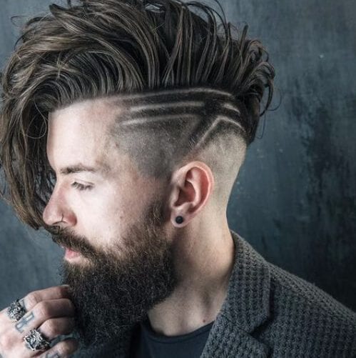 En fait, cette mine avec une idée de barbe est une combinaison de plusieurs styles. Il a une partie difficile , un balayage latéral , un pompadour élevé d'un côté et une contre-dépouille. Sans oublier que son géométrie et son architectural de l'autre côté grâce au rasage et à la façon dont c'est fait. Restez chic avec ce look incroyable.