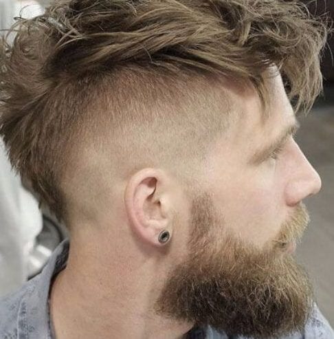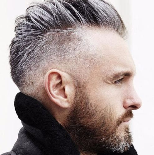 Comme nous l'avons dit précédemment, il est révolu le temps où tout le monde ne portait qu'un seul type de mohawk pointu. Nous vivons dans les jours glorieux du fauxhawk artistique et réinventé, tout comme cet exemple de contre-dépouille avec barbe. Le sel et le poivre méchant gris, bien sûr.
