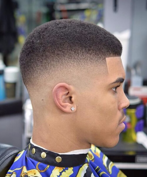 Ini adalah salah satu gaya rambut hitam favorit kami. Ini disebut ledakan kulit tinggi dan Anda bisa melihat alasannya. Hal yang hebat tentang hal itu adalah memanjang wajah dan menyoroti tulang pipi Anda, belum lagi bahwa itu menambah satu atau dua inci ke puncak Anda.