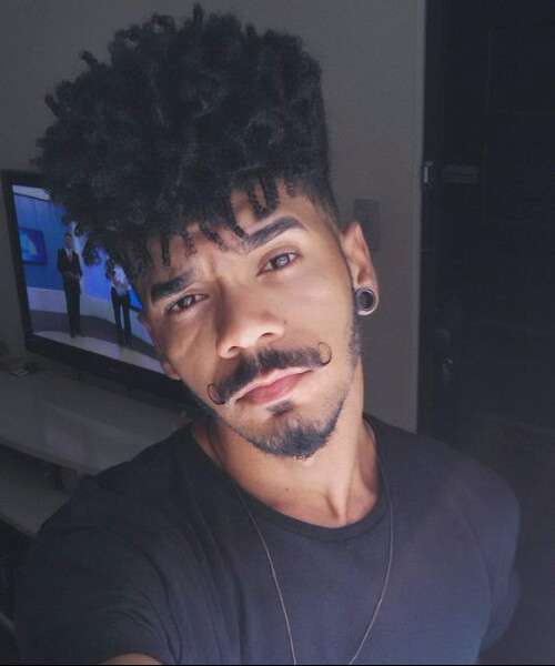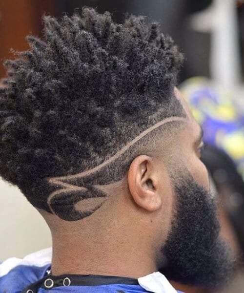 Gaya rambut pria kulit hitam adalah tentang menjadi kreatif dan bersenang -senang dengan ide -ide Anda. Ini adalah yang di bawah bercukur dengan atasan yang sangat panjang dan keriting. Beberapa untaian jatuh di dahi, menciptakan poni yang indah dan palsu.