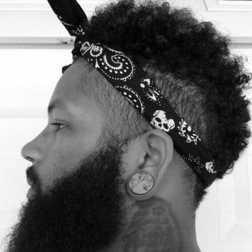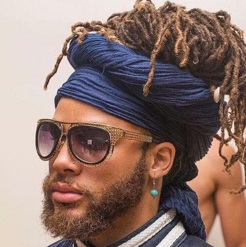 Sejauh menyangkut gaya rambut Black Mens, Anda bahkan dapat memasangkan simpul atas dengan beberapa kepang kicker. Cobalah beberapa yang depan dan biarkan mereka menggantung dengan longgar sehingga mereka dapat membingkai wajah Anda dan membuat kontinum dengan janggut Anda.