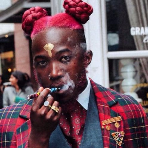 Apakah Anda ingin menjadi pemberontak mode atau sudah? Bagaimana dengan warna rambut marsala yang mengejutkan dalam dua kepang jumbo yang kemudian diikat dalam dua roti ruang di atas kepala Anda? Jangan lupa hiasan emas di wajah Anda.