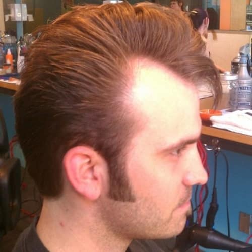 Jika ragu, tanyakan pada diri sendiri ini: Apa yang akan dilakukan raja? Tidak, bukan Raja Inggris di masa depan yang baru saja dibahas, tetapi Raja Rocknroll, Elvis. Inilah yang akan Anda dapatkan jika Anda menggabungkan gaya rambut untuk pria dengan garis rambut surut dan citra peniru Elvis.