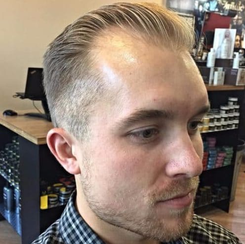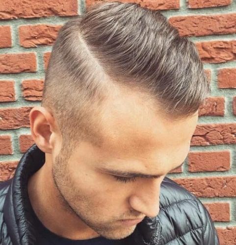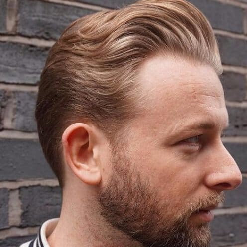 Seperti namanya, potongan rambut ini mendapat manfaat dari bagian samping yang telah disisir ke samping menggunakan gel rambut atau lilin rambut. Garis rambut surut dengan cara klasik tetapi disamarkan oleh perpisahan itu sendiri.
