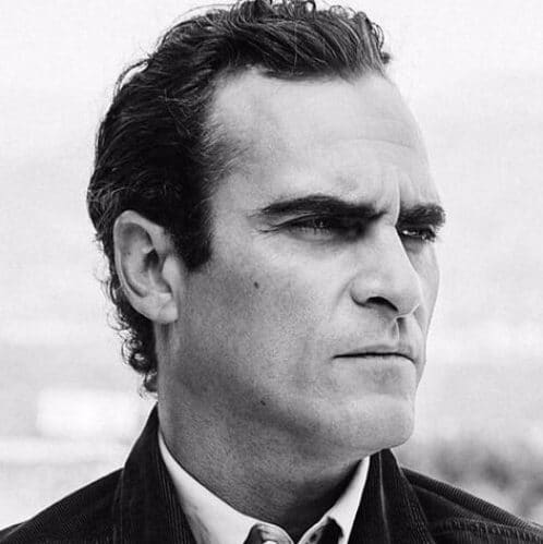 Joaquin Phoenix, selebriti berikutnya dalam daftar gaya rambut kami untuk pria dengan garis rambut surut memiliki rambut berambut cokelat gelap yang sekarang dibubarkan dengan benang putih. Ini juga bergelombang secara alami dan dia memakainya disisir ke atas kepalanya dalam kehidupan nyata.