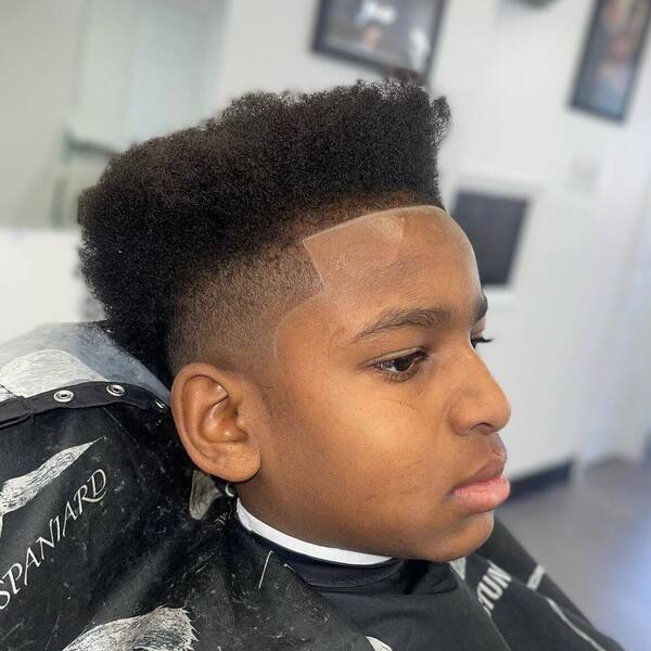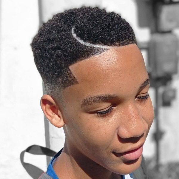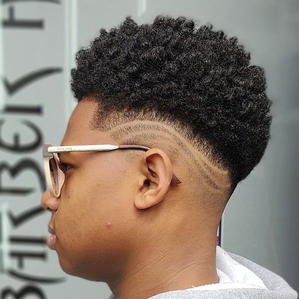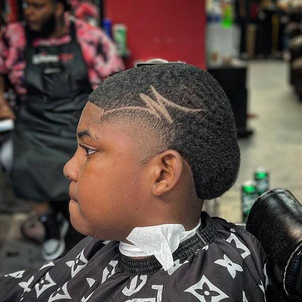 Questo piccolo cutie indossa una morbida dissolvenza con un design a zig-zag sul lato. Se non senti il look a zig-zag, prova a inventare il tuo design e chiedi al tuo barbiere se riescono a farcela.