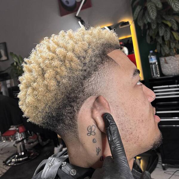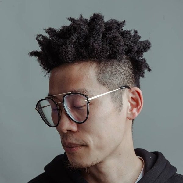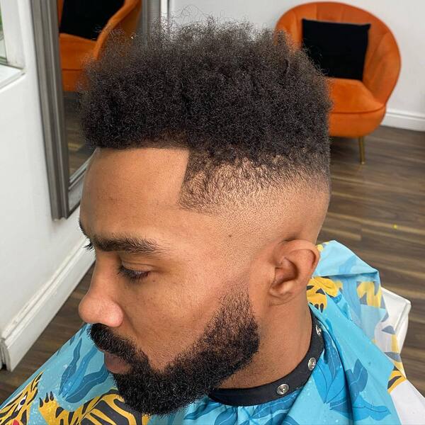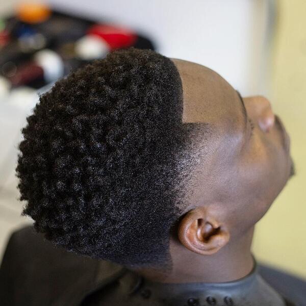 Il prossimo è questo stile afro di alto contenuto. Questo è un buon contrasto tra lo strato superiore di capelli e la sezione calva attorno ai lati e alla schiena. Questa è un'acconciatura droga che funzionerebbe alla grande per gli uomini di qualsiasi età.