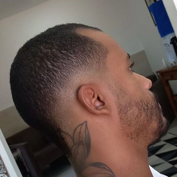 Il prossimo è questa pelle che si sbiadisce con un'acconciatura tagliata al ronzio. Una dissolvenza della pelle mantiene i capelli super corti contro la pelle, oltre a una dissolvenza calva, questo è uno dei svanisce più brevi che puoi provare.