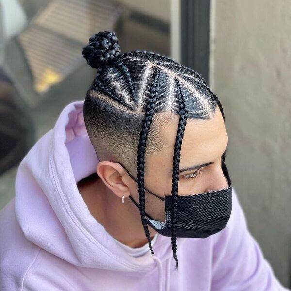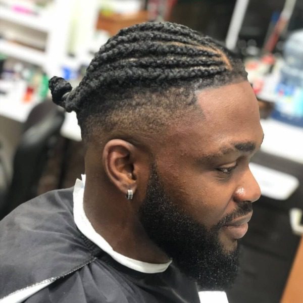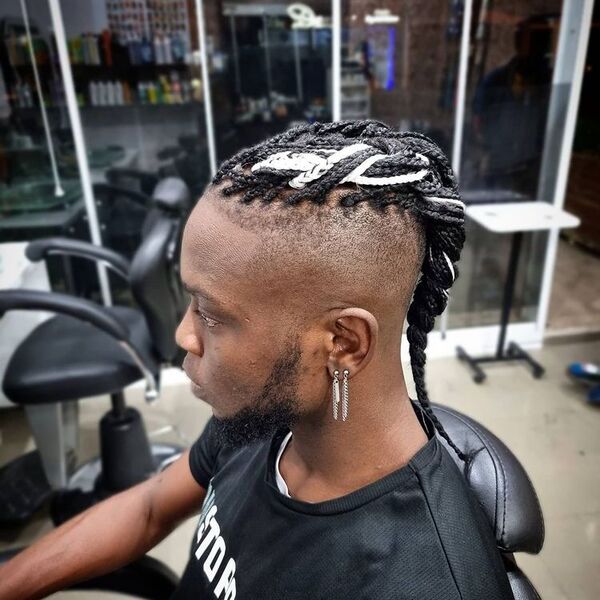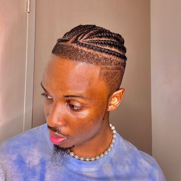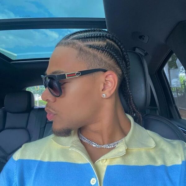 Questo stile di droga ha le trecce da uomo con un sottosquadro fresco. Hanno anche alcuni disegni cut-in nella dissolvenza lungo il lato della testa per uno stile in più. Se riesci a far crescere il pizzetto, migliorerà ancora di più il tuo stile.