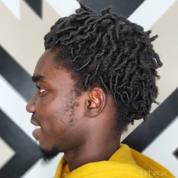 Il prossimo è un look di terrore naturale con uno stile afro. Nella foto sopra hanno piccoli terrori che sporgono in uno stile disordinato, e poi finiscono questo stile con un'alta dissolvenza.