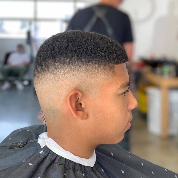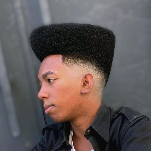 Questo prossimo stile è quello che ci piace chiamare un flattop afro con una dissolvenza acuta. Una dissolvenza acuta è una tecnica che sbiadirà la schiena e i lati dei capelli e si fermerà gradualmente a circa un pollice sopra la tua attaccatura naturale.