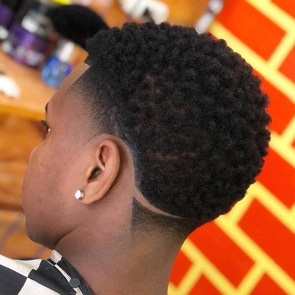 I tagli ricci H fatti con i capelli afro sono un'acconciatura così droga per gli uomini di tutte le età da provare. In questa foto sopra ha un afro perfettamente modellato che viene tagliato attorno all'attaccatura naturale.