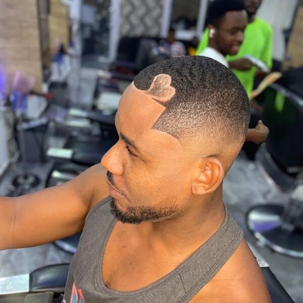 32. Mini tagli di capelli afro -dissolvenza per uomini con un design del cuore